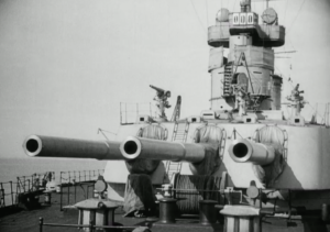MP:  No, not at this time – well, it’s training filming.  We just go out and pretend we do this and pretend we do that.  What was interesting was that we were shown American war correspondent films.  We saw the sinking of the aircraft carrier by Japanese kamikazes, and we sort of all said well how the bloody hell can we cover all that?  You can’t cover all this.  Your gear is just too inhibitive.  And then it came out, the Yanks were using 16 mm cameras and colour.